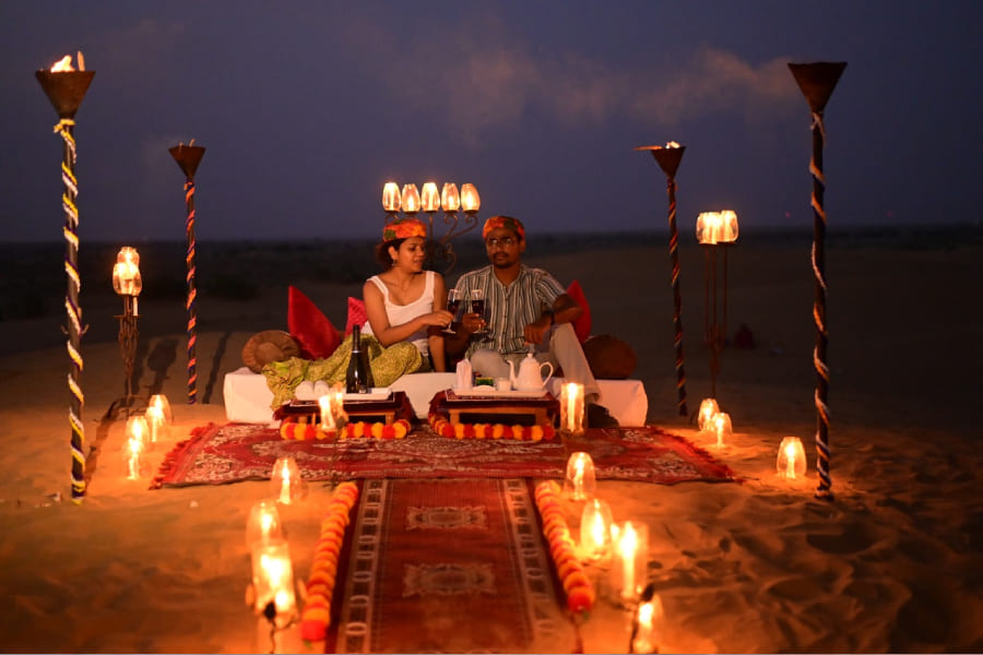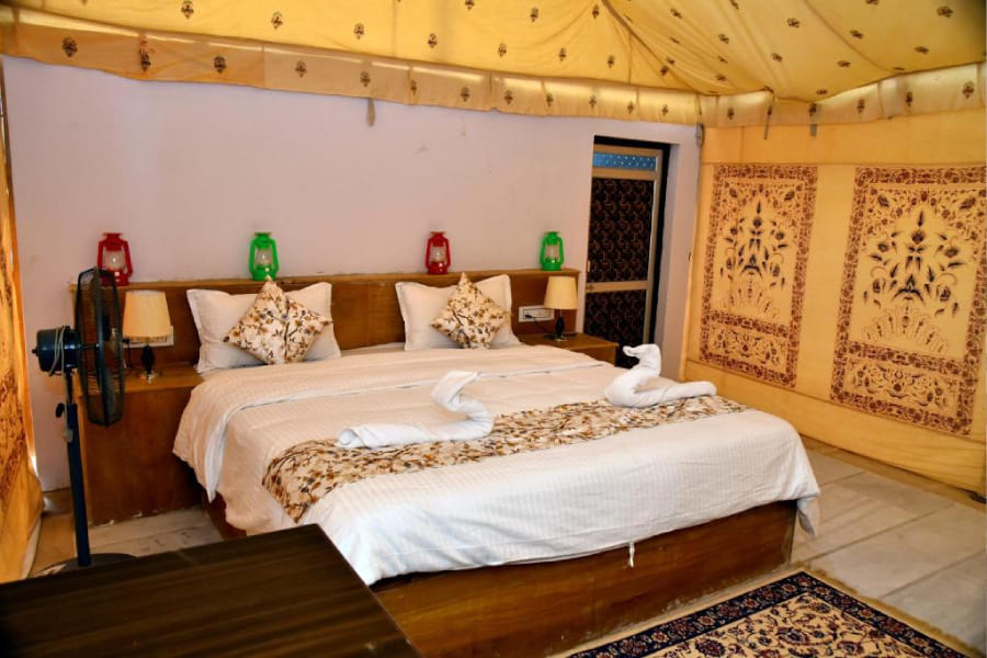 this Desert camp has delightfully styled 25 tents all of which will take you back into the era of Jaisalmer Maharajas lifestyle! One thing which you can never forget in your life is your stay at Luxury Desert camp in Jaisalmer, Reconnoiter the beauty of silky dunes, mesmerizing evenings filled with colorful Rajasthani folk dancers.